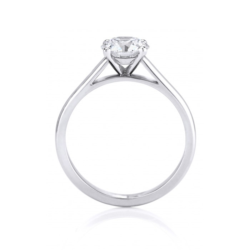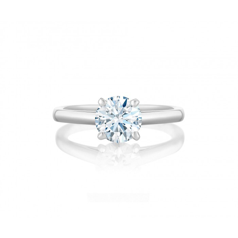 经典系列 镶嵌圆形明亮式切割美钻,优雅别致的四爪戒托环抱比例精准的璀璨美钻,与同系列婚戒交相辉映,成就最美的新娘。