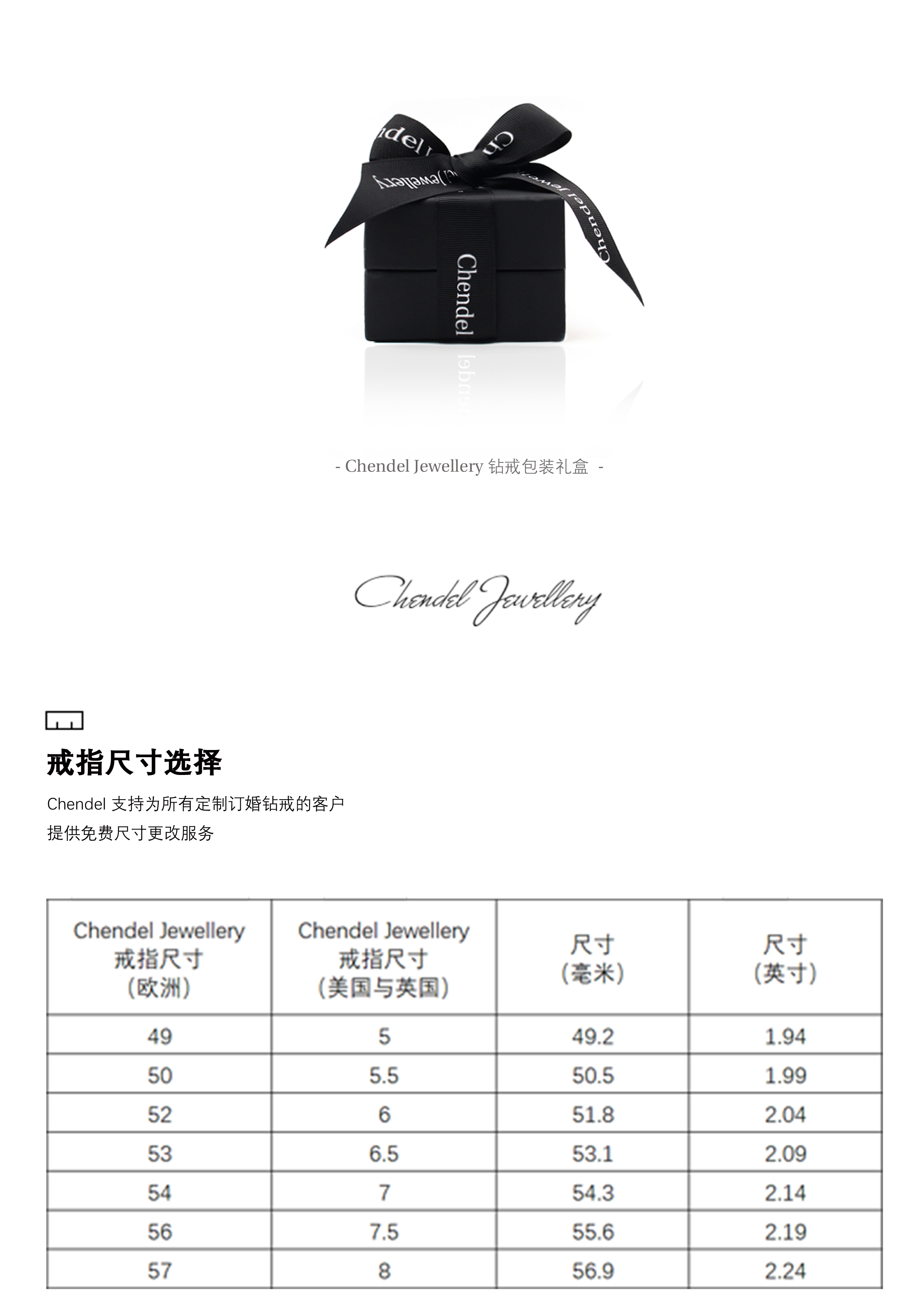 Chendel Jewellery 琛玖珠宝提供钻戒定制服务,致力于最负责任的态度和方式进行钻石采购,并且支持多种主石净度色泽选择。