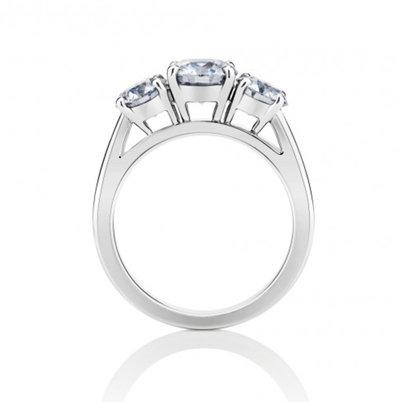 3颗圆形美钻镶嵌在18k白金之上,代表女性通向和谐平衡的完美生活和自然之美的三个关键要素:美丽心灵,健康身体和高尚灵魂。
