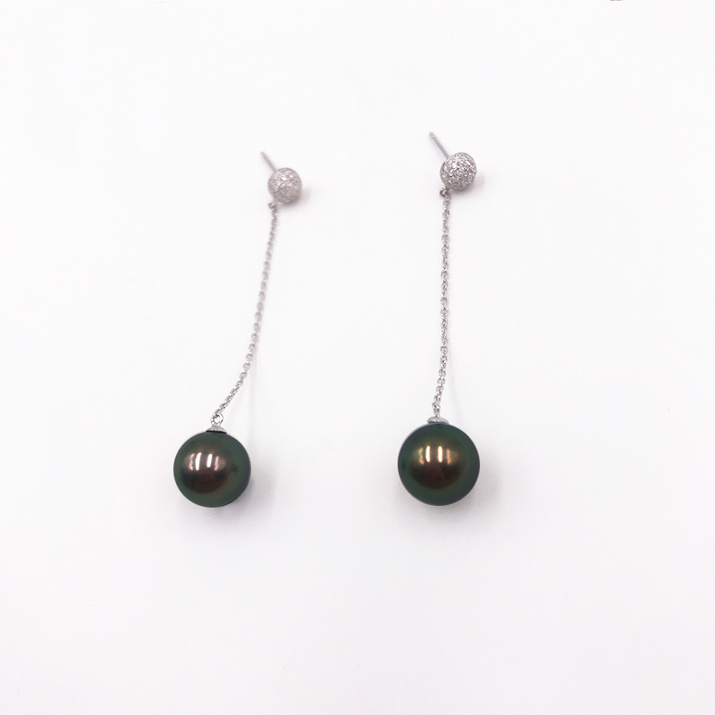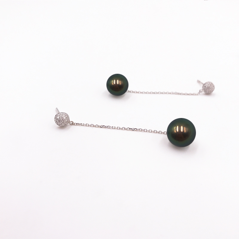 DROP水滴系列 · 大溪地黑珍珠镶钻耳环