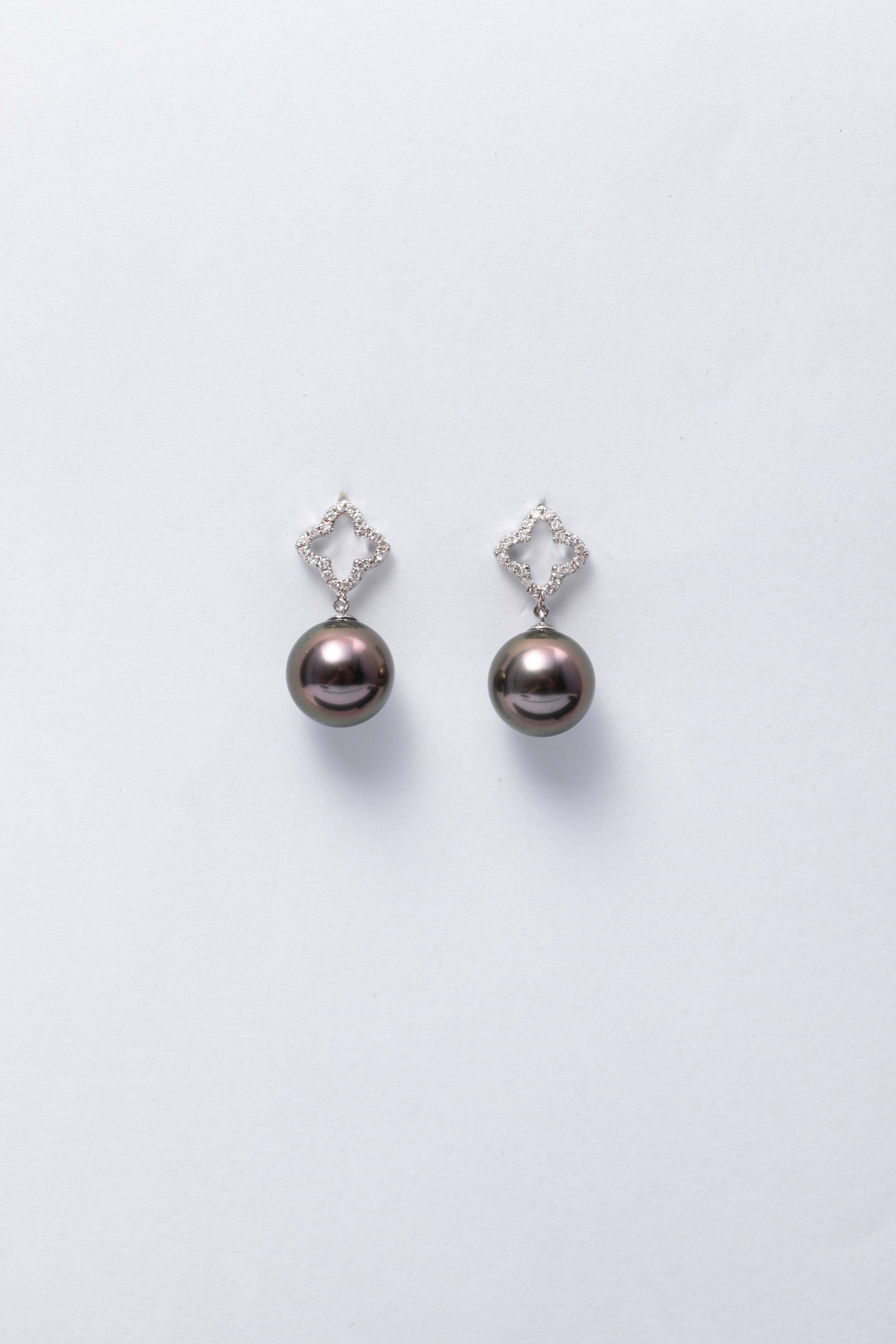 LUCKY 幸运草系列 · 大溪地黑珍珠镶钻耳环