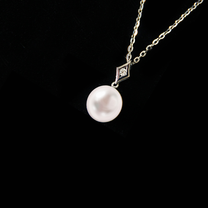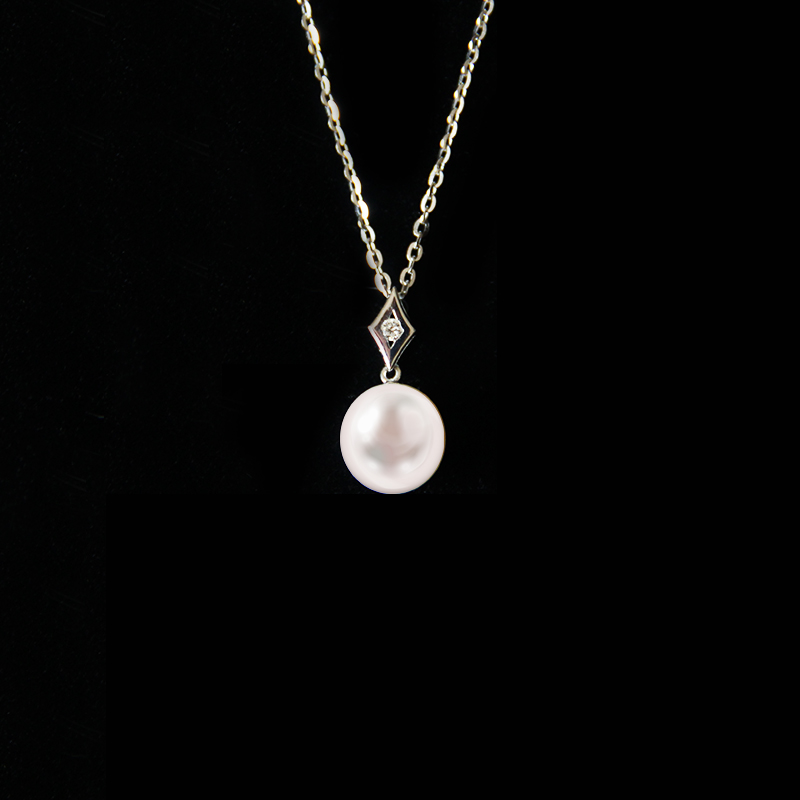 棱角分明的18K铂金四边形中镶嵌着一颗0.03克拉的耀眼的圆形切割式美钻,南洋白珍珠与钻石同样耀眼。