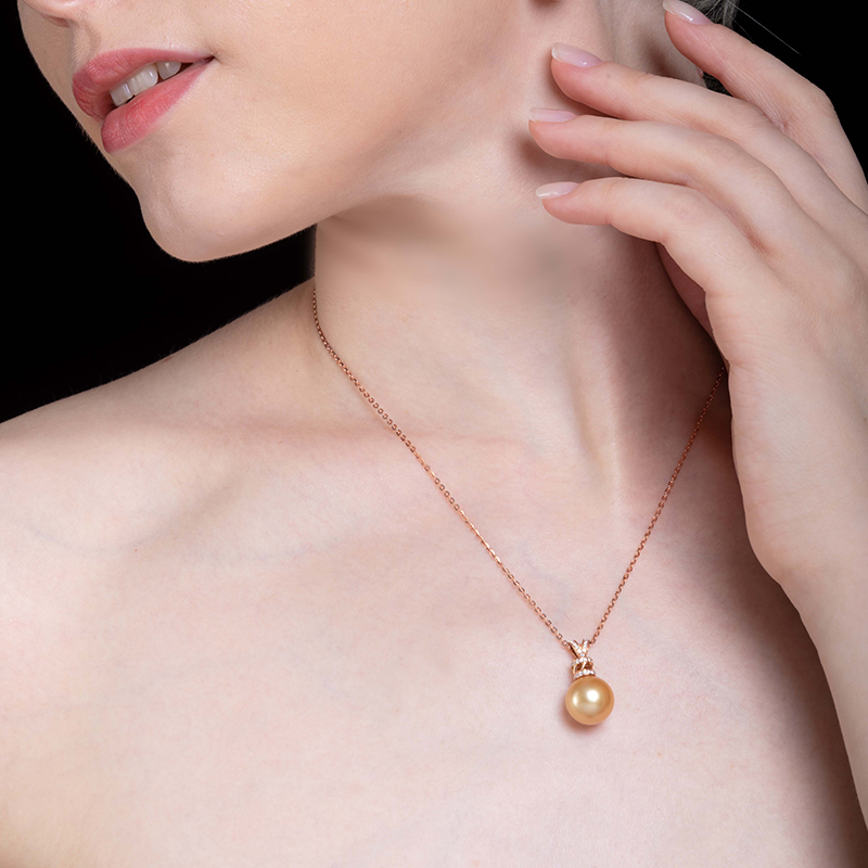 这款金色吊坠坠揉合了时尚风格和典雅格调,南洋金海水珍珠成为展现高贵奢华的不二配饰,更是珍爱系列的灵感缪斯。圆环造型及镶钻设计,既典雅大方,又容易搭配。